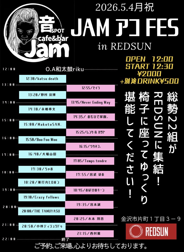 和太鼓riku|katsu death|セイラ|野村 宗博|Never Ending Way|永嶋 奉文|おもひで家族。|MakotoSAN.|レンタ&カツヤ|Boo Foo Woo|ウタネコ。|大堀山田|Temps tendre|ちゃお|宮武 ほお|薬打丸ヒロポン|おばけのキーン|Crazy fellows|宮本 誠|THE TAMUYASU|木本 翔吾|小林ディジュリドゥ|西村 薫
