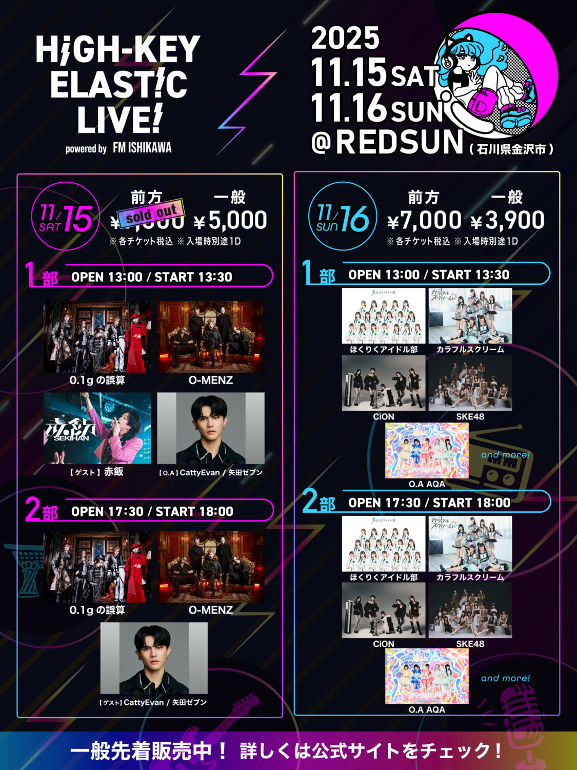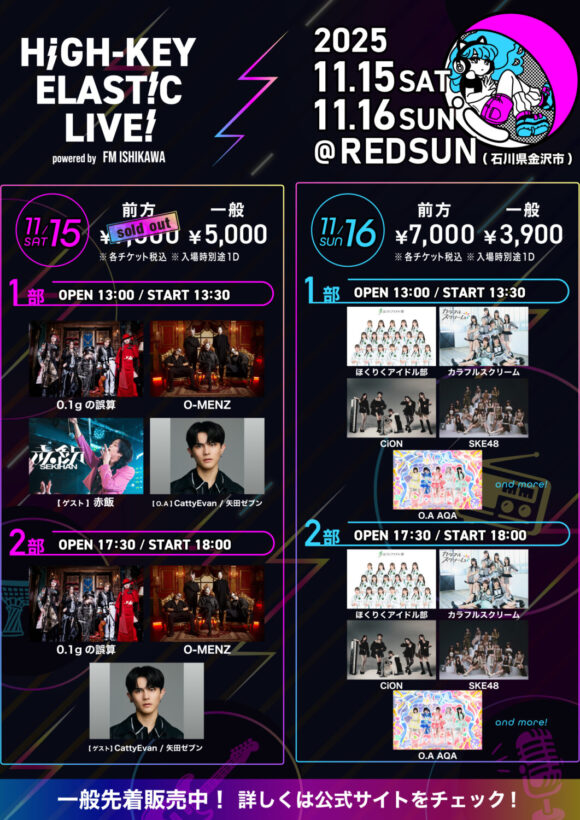 11/30 (Sun.) Open 17:15/START 18:00 チケット Wide Ticket通常チケット専門学生・大学生・大学院生限定チケット小中高生限定チケット新参者到来ワンコインチケット海外向販売通常チケット10,000円5,000円2,5……